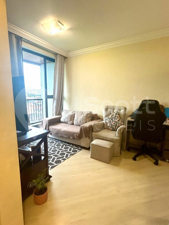 Apartamento com 60m², bem distribuidos, 2 dormitórios, sendo 1 suíte, sala para 2 ambientes, cozinha com armários e área de serviço, sacada e 2 banheiros.